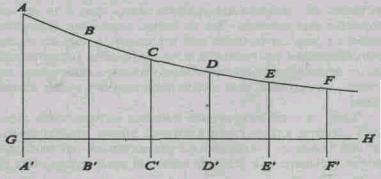 Простейшими условиями, в которых мог бы действовать закон ценности, было бы такое положение, в котором каждый предмет из запаса потребительских благ был способен оказать один вид услуг и лишь тому человеку, который пользуется этим предметом. Предположим, поэтому, сначала, что это действительно так, а впоследствии изменим это предположение, принимая во внимание иные виды услуг, которые способен оказывать в действительности данный предмет. Из психологии мы знаем, что лицо не может получить в одно и тоже время более одной услуги данного характера. Если в этот момент вы можете оказать ему одну какую-либо услугу, то вы не можете в тот же момент оказать ему вторую услугу, в точности дублирующую первую. При обращении к потребителю с двумя совершенно одинаковыми услугами возникает трудность, сходная с физическим затруднением, испытываемым в том случае, когда пытаются заставить два материальных предмета занять одно и то же пространство одновременно. Две абсолютно одинаковые полезности должны в этом случае найти доступ к одному и тому же участку потребительской чувственности, а это невозможно. Нельзя наслаждаться двумя абсолютно одинаковыми удовольствиями вместе, они должны чередоваться, если вообще хотят получить от них наслаждение. Если бы какой-либо предмет способен был оказывать только одну услугу, то в таком случае в пределах данного периода времени первый экземпляр его обладал бы положительной полезностью, а второй отрицательной. Каждый экземпляр после первого был бы уже излишним, и обладатель старался бы отделаться от него. Имея платье определенного вида, он не имел бы непосредственной нужды в другом, сделанном из того же материала и того же фасона. Если бы он обладал подобным платьем и вынужден был им вдруг воспользоваться, и если бы он не мог найти ему какого-либо второстепенного применения, то любой бродяга мог бы получить его безвозмездно. При таких условиях для этого предмета отсутствует кривая полезности. Линия, выражающая полезность последовательных экземпляров этого предмета, обнаружит крутое падение от точки, указывающей положительное количество, к точке, указывающей отрицательное. Пусть положительные полезности измеряются вверх от линии GH, а отрицательные полезности, обычно называемые бесполезностями, измеряются вниз от этой линии. Линия, спускающаяся из Л к линии GH, измеряет величину услуги, оказываемой потребителю одним экземпляром предмета А, а линия, восходящая от А' к линии GH, измеряет бесполезность второго ее приращения. Аналогичным образом линии, исходящие из В, С, D, Е и F, измеряют полезность первых приращений этих вещей, а линии, восходящие из В', С', Е' и F', измеряют бесполезность вторых приращений. Кривая, нисходящая через А, В, С, В, Е и F, является единственной кривой полезности для данного случая. Она иллюстрирует уменьшение размеров различных полезностей, расположенных в определенной последовательности. Линия от каждой из этих букв до горизонтальной линии GH измеряет значение каждой отдельной услуги, являющейся единственной услугой данного вида, получаемой человеком.