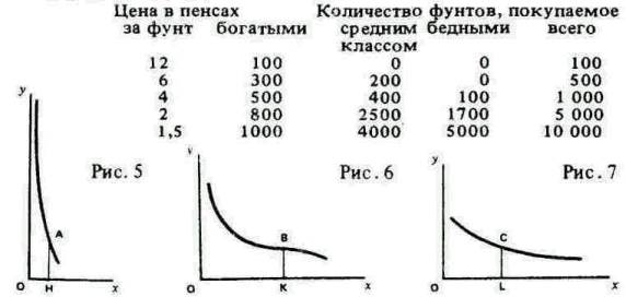 § 1. Мы видели, что единственный всеобщий закон, определяющий желание индивидуумом какого-либо товара, заключается в том, что его желание, при прочих равных условиях, сокращается с каждым увеличением предложения такого товара. Но указанное сокращение может быть медленным или быстрым. Если оно происходит медленно, то цена, которую покупатель дает за товар, резко не снизится в результате значительного увеличения его предложения, а небольшое снижение цены повлечет за собой сравнительно большой рост его покупок. Однако при быстром уменьшении желания небольшое снижение цены вызовет лишь очень малое увеличение покупок. В первом случае готовность покупателя приобрести вещь существенно усиливается под воздействием маленького стимула: можно сказать, что при этом эластичность его потребностей велика. Во втором случае дополнительный стимул, порожденный снижением цены, почти не повлечет за собой усиления его желания покупать: эластичность его спроса при этом мала. Если сокращение цены на чай, скажем, с 16 до 15 пенсов намного увеличит его покупки, тогда повышение цены с 15 до 16 пенсов намного сократит их. Иначе говоря, когда спрос эластичен при снижении цены, он эластичен также и при ее повышении. То, что происходит со спросом отдельного человека, происходит также и со спросом всего рынка. Можно вывести следующее обобщение: степень эластичности (или быстрота реакции) спроса на рынке зависит от того, в какой мере его объем возрастает при данном снижении цены или сокращается при данном повышении цены. [Можно сказать, что эластичность спроса равна единице, когда небольшое снижение цены повлечет за собой пропорционально равное увеличение спроса, или, проще говоря, когда сокращение цены на 1% увеличивает продажи на 1%; она равна 2,5 единицы, когда снижение цены на 1% вызывает увеличение продаж на 2,5% и т. д. (Это весьма грубое утверждение, так как отношение 98 к 100 не равноотношению 100 к 102.) Эластичность спроса лучше всего прослеживается на кривой спроса с помощью следующего правила. Если провести прямую от точки Р на кривой, соединяющей точку Т на горизонтали Ох и точку t на вертикали Оу, то мерой эластичности в точке Р будет отношение РТ к Pt. Когда РТ вдвое больше Pt, снижение цены на 1% вызовет увеличение объема спроса на 2%; эластичность спроса будет равна 2. Если РТ составит 1/3 Pt, снижение цены на 1% вызовет увеличение спроса на 1/3; эластичность спроса будет равна 1/3, и т. д. Иной подход к характеристике того же результата таков: эластичность в точке Р измеряется отношением РТ к Pt, т.е. МТ к МО (РМ - прямая, перпендикулярная МО); следовательно,эластичность равна 1, когда угол ТРМ равен углу ОРМ; она всегда возрастает, когда угол ТРМ увеличивается относительно угла ОРМ, и наоборот. См. Замечание III в Математическом приложении.] § 2. Цену, которая для бедного человека относительно столь высока, что почти недоступна, богатый сочтет вовсе ничтожной; например, бедный никогда даже не отведает вина, тогда как очень богатый может его пить сколько ему хочется, вовсе не задумываясь о его цене. Поэтому мы получим наиболее четкое представление о законе эластичности спроса, рассматривая каждый класс общества отдельно. Разумеется, среди богатых существует много степеней богатства, так же как и степеней бедности среди бедных; но пока что можно игнорировать эти менее значительные 
