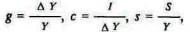 или продукции, иначе говоря: с = I/ΔY ; наконец, s — доля сбережений в национальном доходе, или склонность к сбережению: s = S/Y.