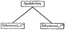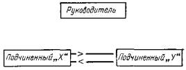 Рис. 3 Прямые единичные связи 2. Перекрестные отношения возникают между двумя подчиненными одного руководителя и используются для взаимного консультирования. Если число подчиненных одного руководителя равно N, то число перекрестных отношений составит N (N-1). Например, если А имеет в подчинении X и Y, то число перекрестных отношений равно двум (см. рис. 4): {X к Y} {Y к X}.