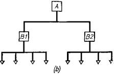 Рис 7 В структуре (а) можно было бы сократить уровень С и получить структуру (b) при условии, если бы оказалось возможным упразднить либо делегировать 80% работы уровня С и 40% работы уровня B. В ситуации, представленной на рис. 7а, можно целиком сократить уровень управления С и получить структуру, показанную на рис. 76, в том случае, если 80% работы этого уровня и 40 % работы уровня В можно сократить или передать помощникам, подчиненным либо, скорее всего. специалистам или ЭВМ. Как показали исследования, руководители действительно затрачивают часть времени на деятельность, не связанную с руководством непосредственными подчиненными. Приводимая ниже таблица из книги Д. Коупмэна «На что расходует свое время руководитель» G. Соpеman. How the Executive Spends His Time. Business Publications, London, 1963. показывает структуру деятельности 58 руководителей (см. табл. 2). Таблица 2 Структура деятельности 58 руководителей