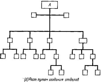 Рис. 8. Группировка работ как реакция на рост нагрузки ГРУППИРОВКА В ЦЕЛЯХ ПОЛУЧЕНИЯ ЭКОНОМИИ ОТ МАСШТАБОВ ДЕЯТЕЛЬНОСТИ Когда однородные работы группируются вместе, операции ведутся в большем масштабе, что является источником экономии. Такой принцип группировки в целях получения экономии известен в литературе по управлению под названием группировки по процессам. Точнее было бы назвать это группировкой для получения экономии от масштабов деятельности, как было показано рядом экономистов. Первым их подробно рассмотрел Дж. М. Кларк в «Вопросах экономики накладных расходов» См.: J. M. Clark. Studies in the Economics of Overhead Cost, 1923, а позднее кембриджский экономист Э. Робинсон в книге «Структура конкурентной экономики» [См.: E. A. G. Rоbinsоd. The Structure of Competitive Industry, 1931.]. Робинсон сгруппировал виды экономии при увеличении масштабов деятельности по следующим категориям: техническая, управленческая, финансовая, торговая, а также - экономия за счет повышения загрузки работников. Экономия технических ресурсов Экономия технических ресурсов при росте масштабов деятельности проявляется в двух аспектах. I. Использование оборудования. Дорогое оборудование требует соответствующих масштабов производства, оправдывающих его приобретение. Подразделение может сложиться вокруг одной машины, например вокруг ЭВМ, обрабатывающей информацию, которую ранее обрабатывало несколько отделов, причем использование ЭВМ даже при неполной загрузке может все-таки давать экономию. Применение одной крупной машины может оказаться более выгодным, чем установка меньших ЭВМ в каждом отделе. II. Углубление специализации. С ростом масштабов деятельности появляется больше возможностей для углубления специализации. Однако Робинсон подчеркивает, что возможна и противоположная тенденция; так, например, установка счетно-перфорационной техники может привести к возникновению ручных операций. Управленческая экономия Группировка сходных работ дает возможность специализировать управляющих. Например, централизация бухгалтерского учета позволяет специализировать одного бухгалтера на начислении налогов, другого - на учете затрат по управлению и т. п. и таким образом лучше использовать ограниченные ресурсы специалистов. Компания не всегда в состоянии содержать десять первоклассных бухгалтеров, возглавляющих десять самостоятельных секторов в разных подразделениях, но она может оплатить работу одного первоклассного бухгалтера, стоящего во главе всего бухгалтерского аппарата. С ростом компании не возникает необходимости в таком же росте специализированных секций или отделов. Например, если все прогнозирование сбыта централизовано, а фирма расширяет производство, стоимость прогноза сбыта на единицу продукции будет снижаться. В то же время такой экономии может и не быть, если каждое отделение фирмы имеет свою службу прогнозирования сбыта. Финансовая и торговая экономия Все закупки могут быть централизованы с целью не только использовать знания специалистов, но и получить торговые скидки на приобретение крупных партий товаров. Аналогично получение кредитов целесообразно централизовать не только для уменьшения суммарной потребности в них, но также и потому, что один общий для компании отдел в состоянии регулировать уровень кредитных ставок и объемы получаемых средств. Эконо