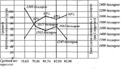 Опуская нули, то есть считая в миллионах, мы можем вывести следующую формулу: ![]() Предположим, что тщательное обследование деятельности железных дорог констатировало крайне непроизводительное расходование материалов, столь же непроизводительное использование труда рабочих и служащих, а также большой излишек оборудования. Предположим, что при более рациональном управлении можно было бы, ничего не теряя, обойтись на материал - 370 млн., на оплату труда - 780, на расходы на капитал - 600'). В таком случае формула нормальной себестоимости выразится в следующих цифрах: ![]() Производительность, или эффективность, всей суммы расходов будет, таким образом, равна: ![]() Итак, отношение нормальной себестоимости операций к действительной их себестоимости и представляет собой выражение эффективности, то есть производительности расходов. Тот же способ может быть применен и к любой отдельной расходной статье: ![]() Действительная, или фактическая, себестоимость может быть выражена в терминах нормальной себестоимости и эффективности: ![]() Зная наперед теоретические нормы себестоимости и среднюю эффективность расходов, мы можем предсказать действительную себестоимость. Все мы стремимся к тому, чтобы сделать весь производственный аппарат максимально производительным, довести производительность до ста процентов. Когда мы испытываем насос или паровую машину, то сначала мы всеми доступными нам средствами устанавливаем известные нормы ее работы, а затем, сравнивая фактическую работу с этими нормами, выясняем производительность машины. Точно также надо поступать и в проблемах управления производством; мы устанавливаем идеалы, сопоставляем с ними фактическую работу и выводим степень производительности. Ею можно пользоваться для проведения будущих расходов точно также, как пользуемся мы ею применительно к насосам и машинам. Зная идеал (норму) сопоставив его с фактической действительностью за истекший месяц, мы можем предвидеть производительность в следующем году. Однако для действительно точного определения производительности выведенная нами формула слишком элементарна. На практике она не раз приводила к путанице и ошибкам. Мы уже говорили выше о том, как нелепо поступает человек, руководствующийся при покупке угля ценою за тонну, но не знающий, что 10 или 15 тыс. тепловых единиц дают фунт этого угля. Мы говорили, как нелепо поступает человек, скупящийся на расходы по оплате труда, не зная качества этого труда, или тратящий деньги на новые машины, не рассчитав, какова будет их эксплуатационная себестоимость и какую нагрузку можно будет этим машинам дать. Себестоимость материалов слагается из двух факторов, а именно: из качества и цены ![]() Нам требуется свести произведение QP к минимуму. Обычно для того первым делом набрасываются на цену, на Р. Но такой способ никуда не годится - снизить цену, не снижая качества, почти никогда невозможно. Наоборот, поскольку качественные требования все время неуклонно повышаются, вместе с ними постепенно растут и цены. В последнее время железным дорогам было уже очень трудно получать стальные рельсы дешевле 28 долл. за тонну. Основным фактором является количество Q. Количество материалов можно сокращать почти беспредельно. Возьмем для примера хотя бы уголь. Топки паровых котлов и машин расходуют в среднем от 5 до 7 