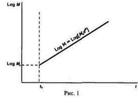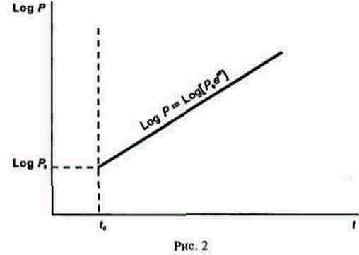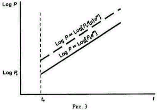 Математически это записывается так: M(t)=M0eμt (1) Как распределяются дополнительные деньги между отдельными субъектами для нас несущественно, поскольку каждый из них в отдельности не способен изменить это количество. Простейшее допущение состоит в том, что каждый субъект получает определенную долю того, что у него уже есть, и эта доля в дальнейшем остается неизменной. Основания для такого допущения скоро станут ясны. Очевидно также, что теперь возможны эффекты неравномерного распределения, в отличие от случая однократного скачка. Пока, однако, мы этим пренебрежем. Реагировать на этот постоянный денежный дождь люди могут как и в случае однократного скачка, т. е. поддерживая неизменным свой денежный запас в реальном выражении. Если они поступят именно так без промедления, то все реальные параметры не должны измениться. Цены же должны в точности следовать за денежной массой, т. е. расти от начального уровня со скоростью 10% в год, как показано на рис. 2: Номинальный доход поведет себя так же; его зависимость от времени может быть представлена той же прямой линией. Но если учесть денежный дождь, это поднимет номинальный доход с уровня Y1(t)=Y0eμt (2) до уровня Y2(t) = Y0eμt = μM(t) = (Y0 + μM0)eμt (3) или, если воспользоваться данными нашего примера, от величины 10 000 долл. в год до 10 100 долл. в год для момента t = t0, причем добавочные 100 долл. представляют процент прироста годового дохода, на который денежная масса поднимет этот доход в начальный момент. Поскольку, однако, реальный объем услуг остается неизменным, а люди мгновенно реагируют на происходящее, они не будут рассматривать эти 100 долл. как увеличение своей покупательной способности, а просто добавят эти доллары к своему начальному запасу, чтобы поддержать его на привычном уровне одной десятой годового дохода. Если люди не реагируют мгновенно, либо на рынках существуют барьеры, препятствующие восстановлению равновесия, то ситуация в период перехода будет отличаться от описанной, и сказанное выше будет справедливо лишь для конечного состояния. Возникает естественный вопрос, почему же цены устанавливаются на новом, более высоком уровне, если на рынках нет барьеров и реальные показатели стабильны. Ответ состоит в том, что каждый участник рынка втайне убежден, что цены будут расти. Старая пословица гласит, что «Разность мнений играет на скачках». И точно так же обстоит дело на любом фондовом рынке. Если существует широкий разброс мнений относительно курсов ценных бумаг, торговля идет трудно и цены изменяются малыми шажками. Но если на рынке царит согласие, цены могут взлетать и падать почти без торга. В нашем примере, хотя рынки и находятся в равновесии, цены растут, потому что каждый знает, что они должны расти. Все кривые спроса и предложения в номинальных единицах сдвигаются вверх на 10% в год, обеспечивая тем самым рыночное равновесие. С этим связан и вопрос о том, что же делает цены стабильными? Этой силой являются сами отклонения. Если бы цены (и номинальный доход) по каким-то причинам сдвинулись менее чем на 10%, то при этом возросло бы отношение денежной массы к доходу, и стремление вернуть это отношение на прежний уровень привело бы к повышению цен, как и в случае с однократным скачком. Если же цены возрастают более чем на 10% в год, идет обратный процесс снижения цен до равновесного уровня. Хотя люди могут 