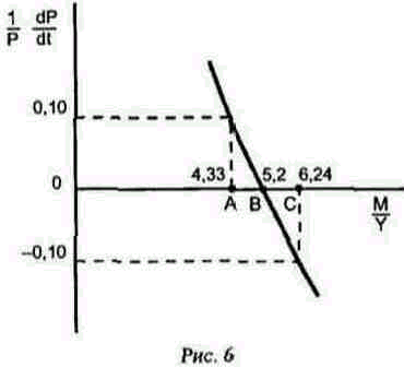 В новом состоянии равновесия, имея запас наличности, равный 6,24 недельного дохода, каждый член общества становится богаче (неравномерностью распределения пренебрегаем), чем он был раньше, - он имеет больший запас денег на случай всяких неожиданностей. Но все другие реальные ресурсы, доступные обществу, остаются при этом на прежнем уровне. Все это выглядит так, как будто каждому стало лучше чем прежде, и как если бы увеличение отрицательного наклона прямой падения цен означало увеличение богатства. Ошибочность такого представления станет очевидной, если мы посмотрим, что произойдет при дальнейшем увеличении этого наклона. Существует некоторое предельное значение наклона, превышение которого вынуждает субъекта нести известные издержки, и тем не менее он будет стремиться обладать избыточным запасом, потому что последний дает ему прибыль в силу возросшей покупательной способности денег. Розничный торговец обходится до определенного момента одним мальчиком - посыльным, экономя таким образом на величине денежного запаса, однако с некоторого момента ему придется нанять стражу для его охраны. Он будет вынужден сделать это ввиду возросшей стоимости денег. И вот с этого момента избыточный запас денег в реальном выражении не только не сберегает производственные ресурсы, но, наоборот, начинает их поглощать. Точно так же обстоит дело, если смотреть на запас наличности как на актив, который приносит неденежный доход, насыщая желание обладать богатством и гарантируя от возможных неожиданностей (мотив предосторожности). Полезность денег, количество которых превосходит некоторый предел, падает, либо потому что требует заботы об их помещении в ценные бумаги, либо потому что требует денежных расходов на их хранение и защиту. Итак, при малом темпе снижения цен очевиден чистый выигрыш, при большом - чистые потери. Каким же должен быть оптимальный темп снижения цен? Реальные прибыли и издержки, обусловленные запасом денег, которым обладает субъект, могут быть отнесены к четырем классам: (1) Рост или падение покупательной способности доллара, причем не фактические, а их ожидаемые величины, что подчеркивается знаком «звездочка» в следующей формуле: -[(1/P)(dP/dt)]* (4) Если ожидается снижение цен, это - величина положительная и соответствует доходу, если ожидается повышение цен - отрицательная и соответствует издержкам. Если взять отдельного субъекта, то ожидаемый им темп снижения цен не зависит от величины его собственного запаса наличности, так что средние и предельные значения дохода или издержек равны. (2) Производственные услуги, создаваемые 1 долларом в течение года; денежный запас выступает здесь как фактор производства. Ценность этих услуг должна зависеть от величины запасов, которыми обладают отдельные субъекты, поэтому следует проводить различие между средним и предельным доходами. Мы будем иметь дело с предельной величиной дохода, которую назовем «предельный продукт денег» (marginal product of money) MPM. (5) Подобно величине, определенной ур. (4), МРМ имеет размерность, обратную времени (доход, деленный на год), т. с. ту же, что и процентная ставка. И точно так же, как (4), величина (5) может быть положительной (доход) и отрицательной (издержки). Будем считать кроме того, что это - величина убывающая во всей области определения. (3) Нeдeнeжныe потребительские ус